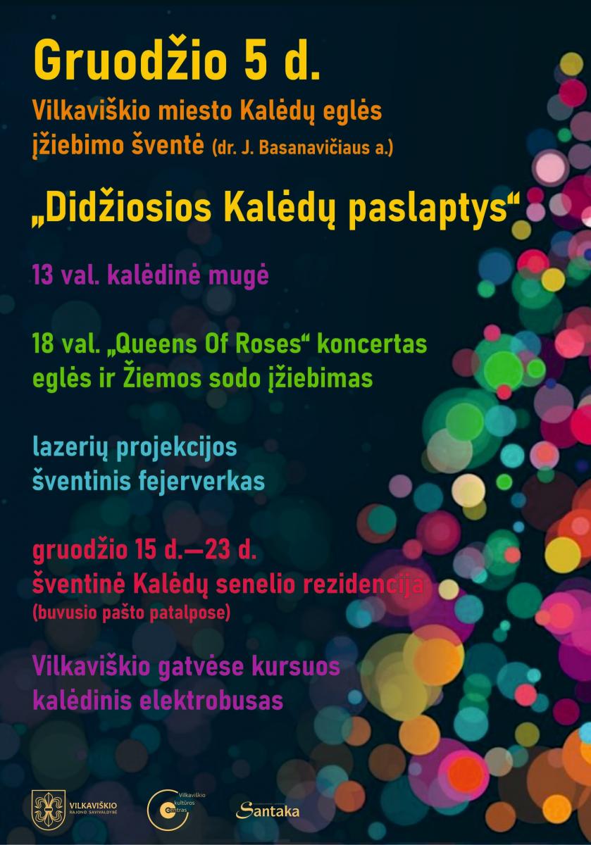 Vilkaviškio miesto eglės įžiebimas „Didžiosios Kalėdų paslaptys“
